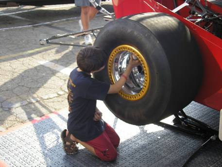 Zach polishes the wheels before eliminations.